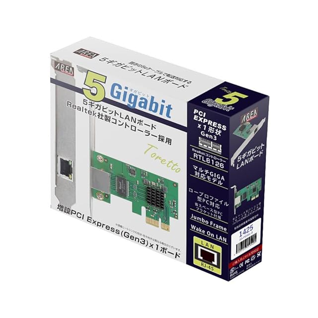 商品名:エアリア Toretto 5Gbps対応 PCI Express x1(Gen3) 接続 LANボード RJ45 ネットワーク 増設ボード 拡張ボード ヒートシンク搭載 ロープロファイル対応 SD-PE5GL-B