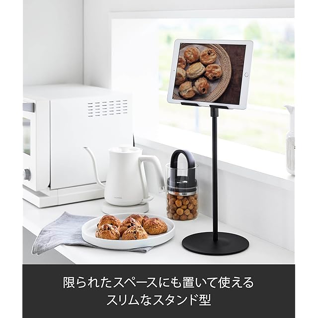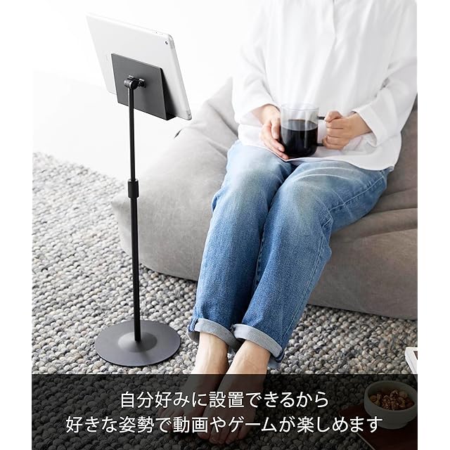 商品名:山崎実業(Yamazaki) 高さと角度が調節できる タブレットスタンド ブラック W17×D17×H40.8~65.8cm スマート smart ゲーム機スタンド 1434