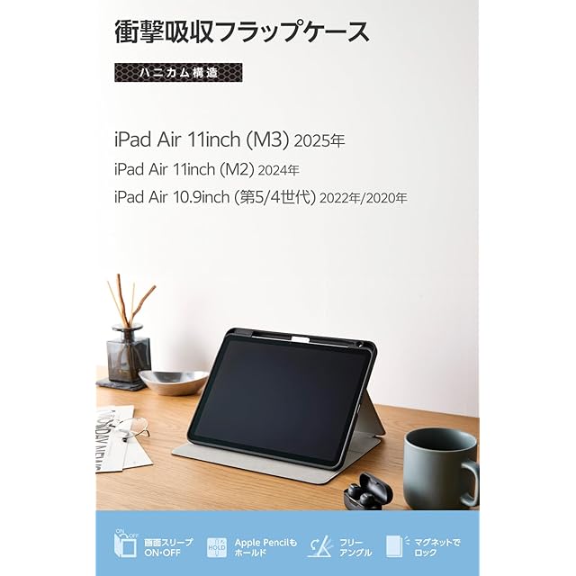 商品名:エレコム iPad Air 11インチ (M3/M2) 10.9 (第5世代 第4世代) ケース Apple Pencilスタンド付き 衝撃吸収 スリープモード ブラック TB-A25MSABK