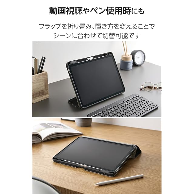 エレコム iPad Air 11インチ (M3/M2) 10.9 (第5世代 第4世代) ケース Apple Pencilスタンド付き 衝撃吸収 スリープモード ブラック TB-A25MSABK | LIS MART
