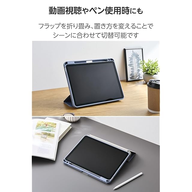 商品名:エレコム iPad Air 11インチ (M3/M2) 10.9 (第5世代 第4世代) ケース Apple Pencilスタンド付き 衝撃吸収 スリープモード ブルーグレー TB-A25MSABG