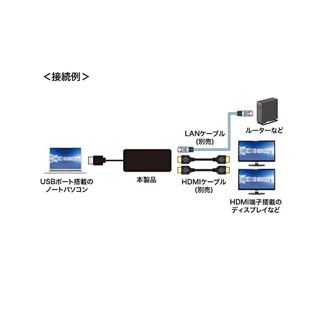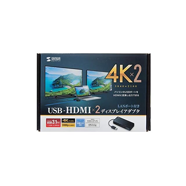 商品名:サンワサプライ USB3.1-HDMIディスプレイアダプタ(4K対応・ 2出力・LAN-ポート付き) USB-CVU3HD3