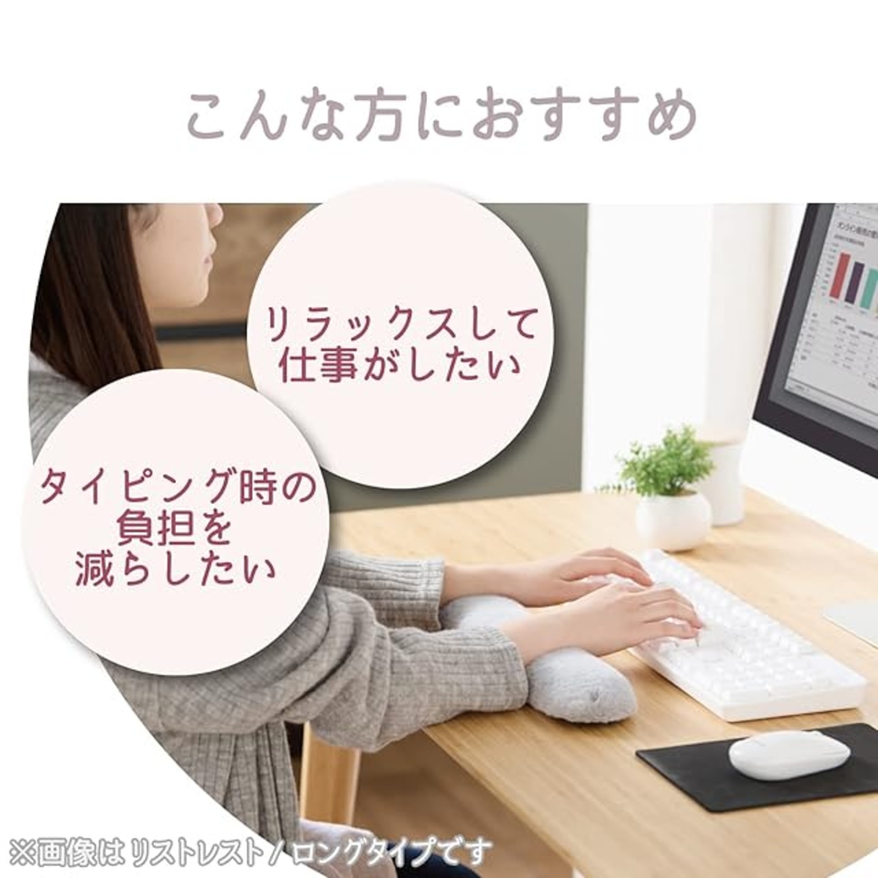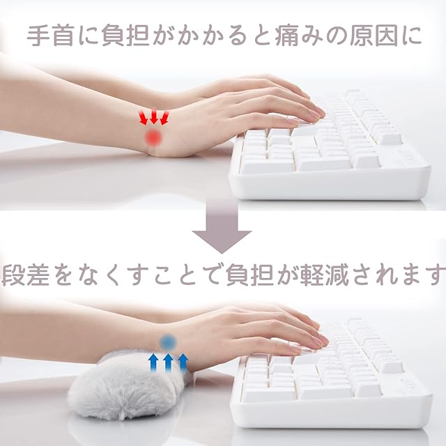 スポンジクッションがやわらかく手首を支え、タイピング疲れを軽減します。