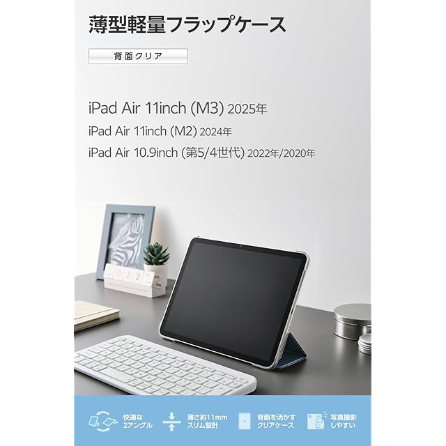 商品名:エレコム iPad Air 11インチ (M3/M2) 10.9 第5/4世代 ケース オートスリープ対応 2アングル 手帳型 背面クリア ブルーグレー TB-A25MWVBG