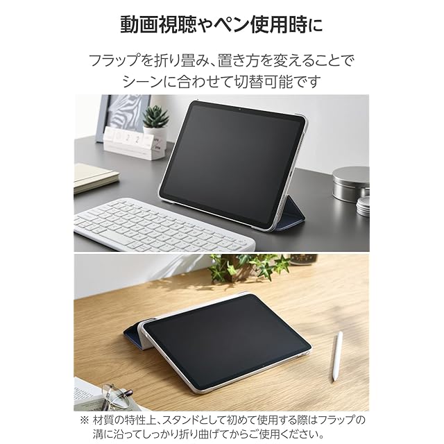 動画視聴やタイピングなどのシーンに合わせて2つのスタンド角度を選べます。