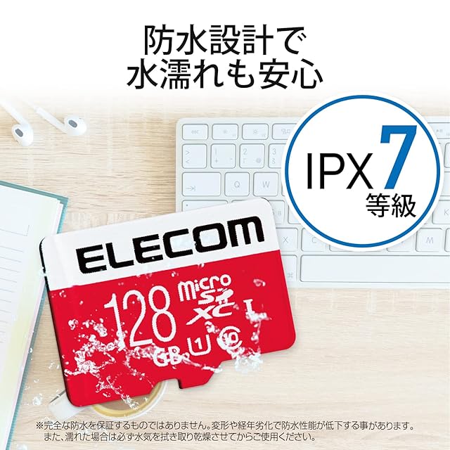 「JIS防水保護等級7(IPX7)」に準拠した防水設計で、メモリカードの交換時などにうっかり水に濡れてしまっても安心です。※変換アダプタは防水ではありません。