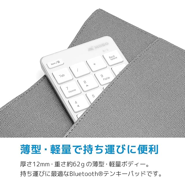 薄型・軽量で持ち運びに便利 : 厚さ12mm・重さ約62gの薄型・軽量ボディー。