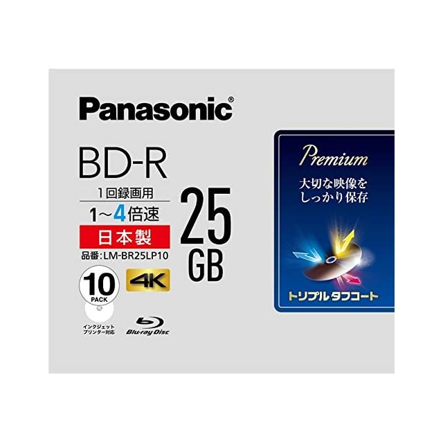 商品名:パナソニック 4倍速ブルーレイディスク片面1層25GB(追記型)10枚P