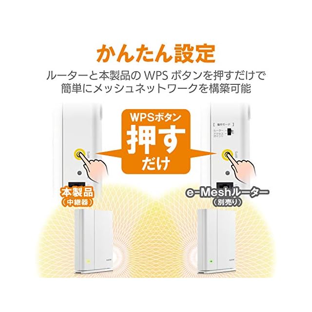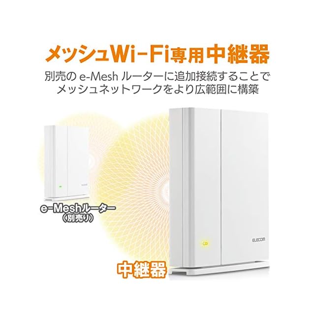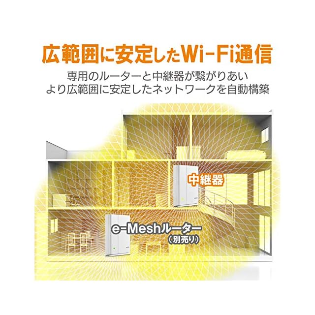[特徴]e-Meshルーター※と繋げることで、より広いエリアでメッシュネットワークを構築するe-Mesh専用中継器単品モデルです。※ 別売り
