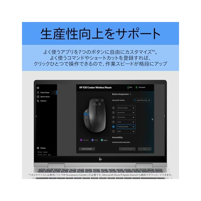 HP 930 ワイヤレス クリエイター マウス Bluetooth または USB ドングル経由で接続 マルチ OS 7 プログラムボタン 人間工学に基づいたグリップ 静音 超高速スクロール 3000dpi ガラス面読み取り対応センサー USB-C充電式 電池もち3か月 | LIS MART