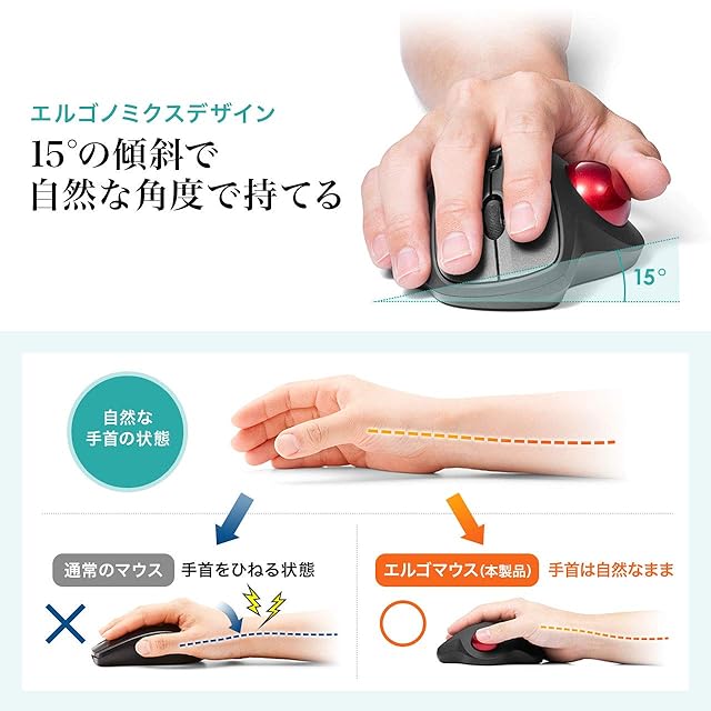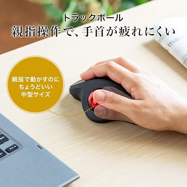 親指で動かすのにちょうど良い34mm中型サイズのボールを採用しています。