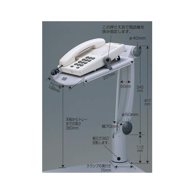 デスクの天板にクランプで固定するタイプのテレホンアームです