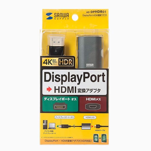 商品名:サンワサプライ(Sanwa Supply) DisplayPort-HDMI 変換アダプタ HDR対応 AD-DPHDR01