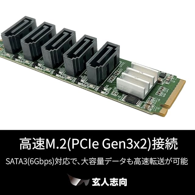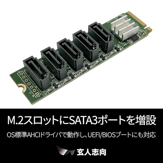 ✅内蔵SATA3(6Gbps)を5ポート増設可能なM.2カード