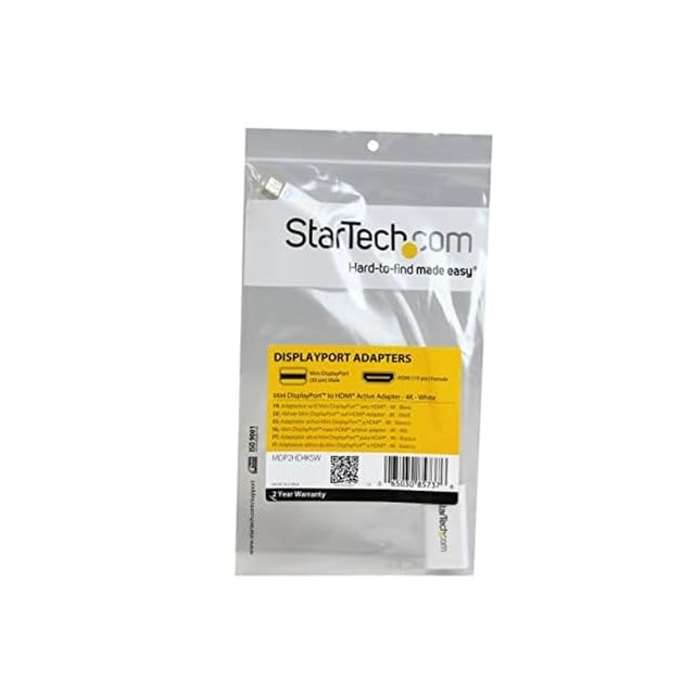 商品名:StarTech.com Mini DisplayPort - HDMI 変換アダプタ/mDP 1.2 - HDMI ビデオ変換/4K30Hz/ミニディスプレイポート - HDMI 映像コンバータ/ミニDP - HDMI アクティブアダプタ/Mini DP または Thunderbolt 1-2 搭載 Mac & PC をHDMIディスプレイに接続/ホワイト MDP2HD4KSW
