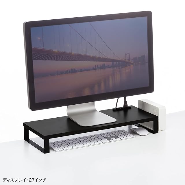 モニター下の空間を収納スペースにできるモニター台です。