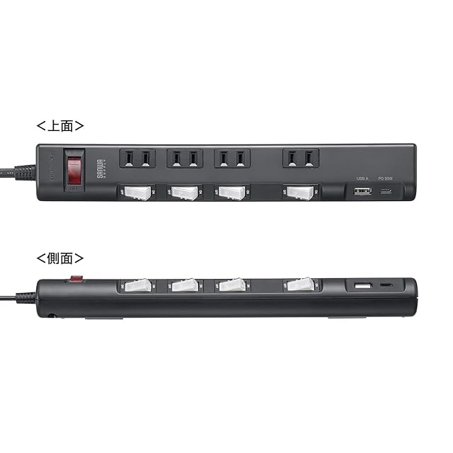 商品名:サンワサプライ 節電タップ(2P・4個口・2m・ブラック) TAP-B107UC-2BK