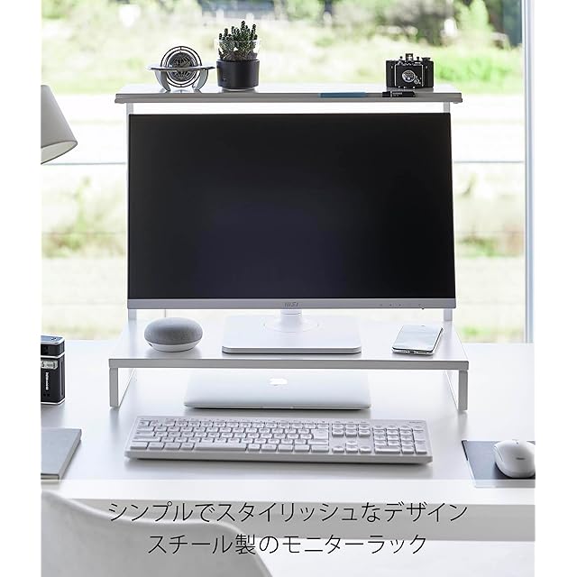 山崎実業(Yamazaki) モニター上下ラック 2段 ホワイト W59×D27.5×H38~65cm(調節ネジ含む) タワー tower 高さ調節可能 モニター台 モニタースタンド 1302 | LIS MART