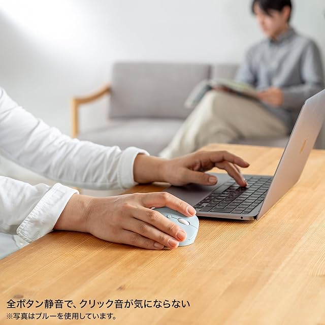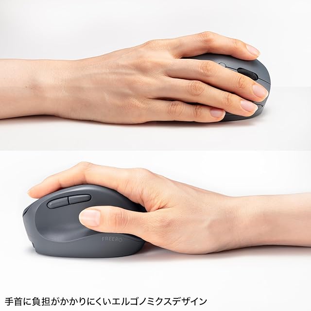 人間工学形状で、手首への負担が少ないエルゴノミクスデザインのBluetooth+ワイヤレスのコンボマウスです。