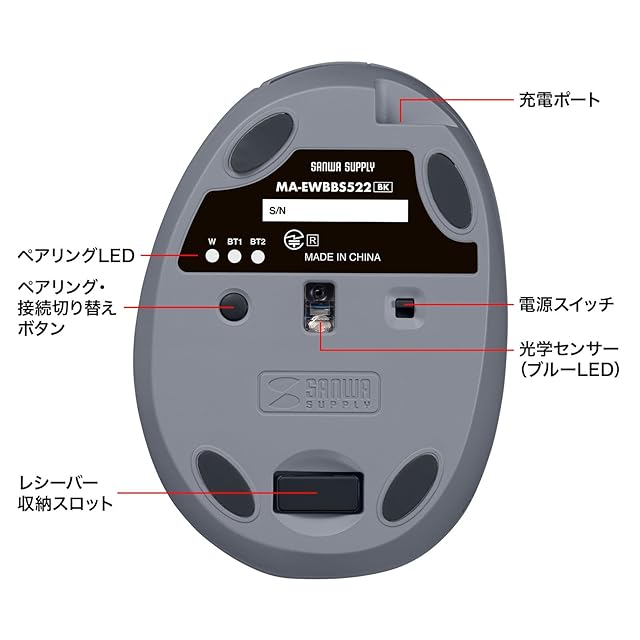 商品名:サンワサプライ 静音ワイヤレス コンボ 小型エルゴノミクスマウス(充電式・5ボタン・ブラック) MA-EWBBS522BK