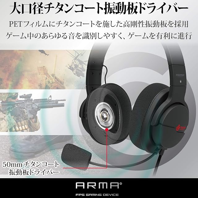 ガンシューティング系ゲーム(FPS)プレイに最適な“ARMAシリーズ”のゲーミングヘッドセットです。