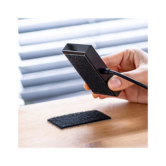 面ファスナー付きで机などに固定することができ、ケーブルの反発で本体が浮くのを防止します。