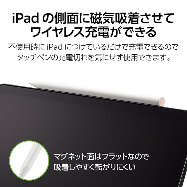 商品名:エレコム タッチペン 【 iPad専用 】 充電式 ワイヤレス充電対応 パームリジェクション対応 傾き検知対応 磁気吸着 【iPad mini6 Air4 Air5 など対応】 スタイラスペン ホワイト P-TPWIRE01WH