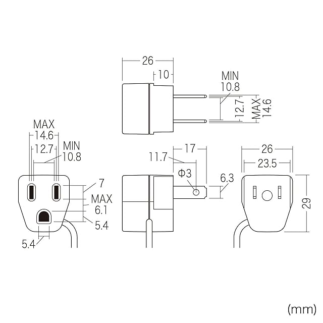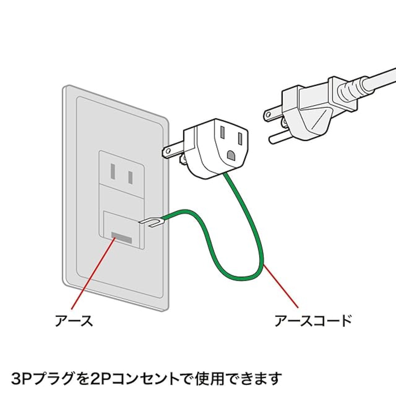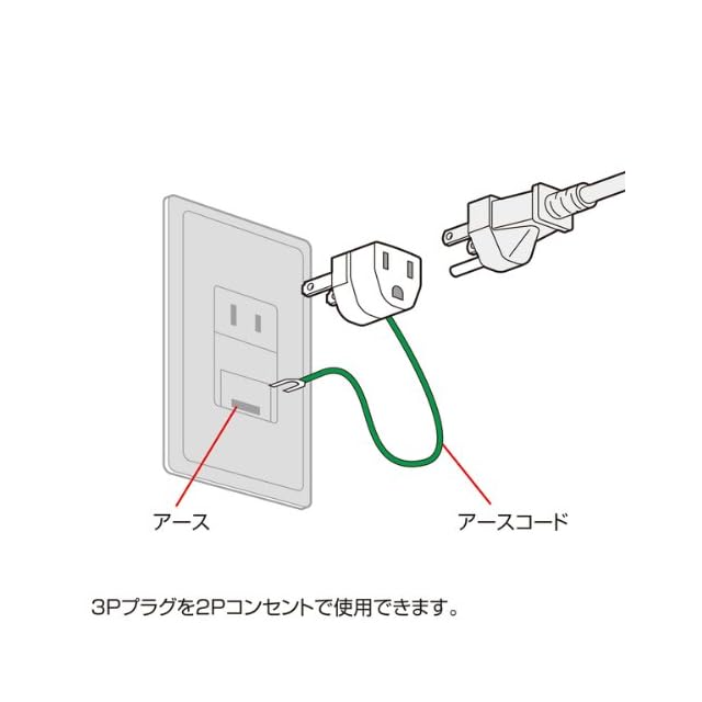 3Pプラグに差し込むだけで、ご家庭の2Pコンセントで使用できます。