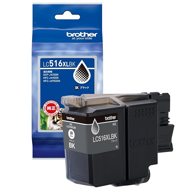 商品名:【ブラザー純正】LC516XLBK インクカートリッジ ブラック 大容量タイプ 対応機種:DCP-J4250N、MFC-J4450N、MFC-J4950N 他