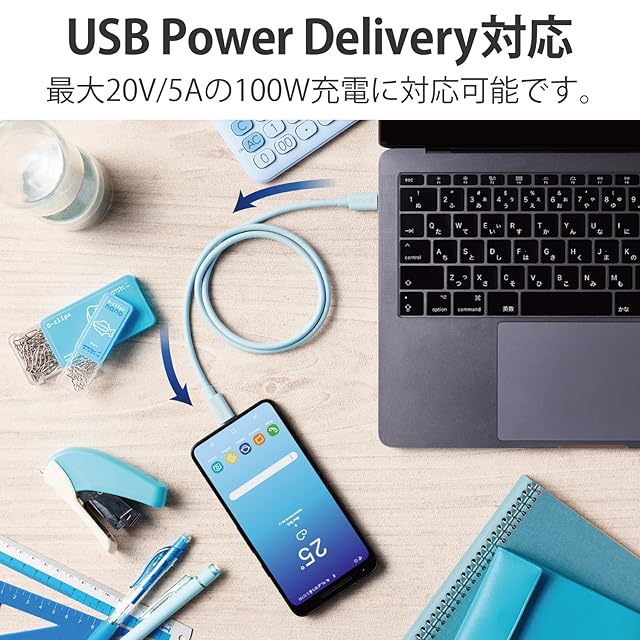 エレコム USB Type C ケーブル USB Power Delivery対応 (USB-C to USB-C) USB4ケーブル 0.8m ブルー 【iPhone 16 シリーズ 対応検証済】 USB4-APCC5P08BU | LIS MART