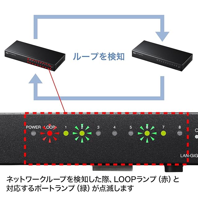 商品名:サンワサプライ Giga対応スイッチングハブ(8ポート) ループ検知機能つき LAN-GIGAH8L