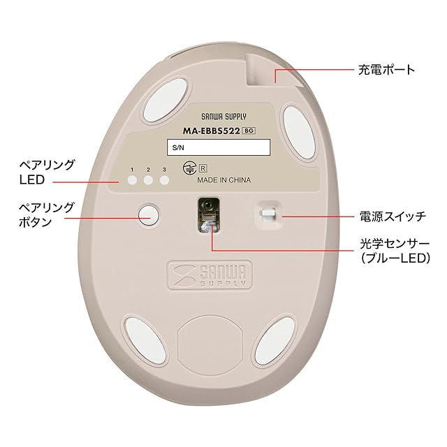商品名:サンワサプライ 静音Bluetooth小型エルゴノミクスマウス(充電式・5ボタン・ベージュ) MA-EBBS522BG