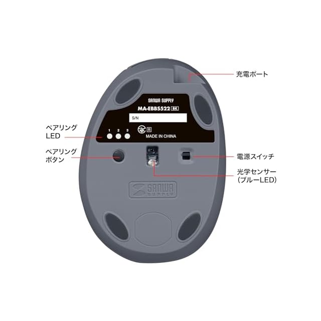 商品名:サンワサプライ 静音Bluetooth小型エルゴノミクスマウス(充電式・5ボタン・ブラック) MA-EBBS522BK