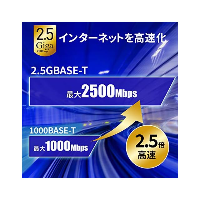 gigabit(1gbps)よりも約2.5倍高速な2.5gbps(規格値)に対応、最大転送速度 約2,372mbps(実測値)を実現しました。 2.5gbe対応機器とあわせてご利用いただくことで、大容量のファイルのやりとりや高品質な動画視聴も快適になります。