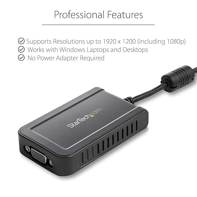 外付けビデオアダプター:1口のUSB Type-Aポートを使用してノートパソコンやデスクトップPCにVGAモニターを増設できるUSB - VGA変換アダプター。50cm一体型ケーブル内蔵。TAA準拠