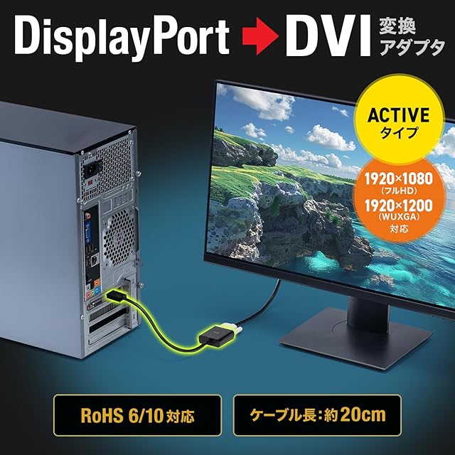 商品名:サンワサプライ DisplayPort-DVI変換アダプタ(Activeタイプ) AD-DPDVA02