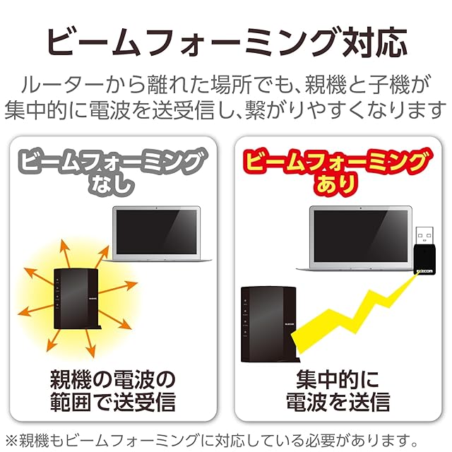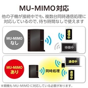 電波干渉に強い5GHz帯(11ac/n/a)は最大867Mbps、一般的な通信帯域である2.4GHz帯(11n/g/b)は最大300Mbpsの高速通信が可能です。(規格値)