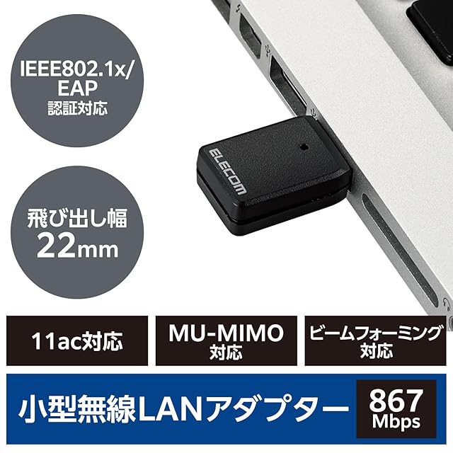 エレコム WiFi 無線LAN 子機 Wifi5 867Mbps+300Mbps 5GHz 2.4GHz USB3.0 USB-A 11ac/n/g/b/a IEEE802.1x / EAP認証 法人向け ブラック WDB-867DU3S | LIS MART
