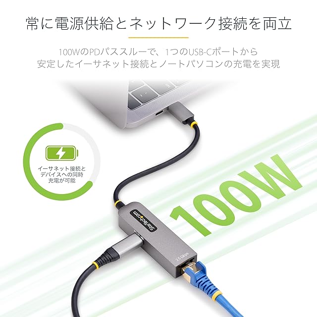 StarTech.com USB有線LANアダプター/USB-C接続/2.5Gbpsマルチスピード/100W PD/Thunderbolt互換/Windows & Mac 2GPD3-USB-C-ETHERNET | LIS MART