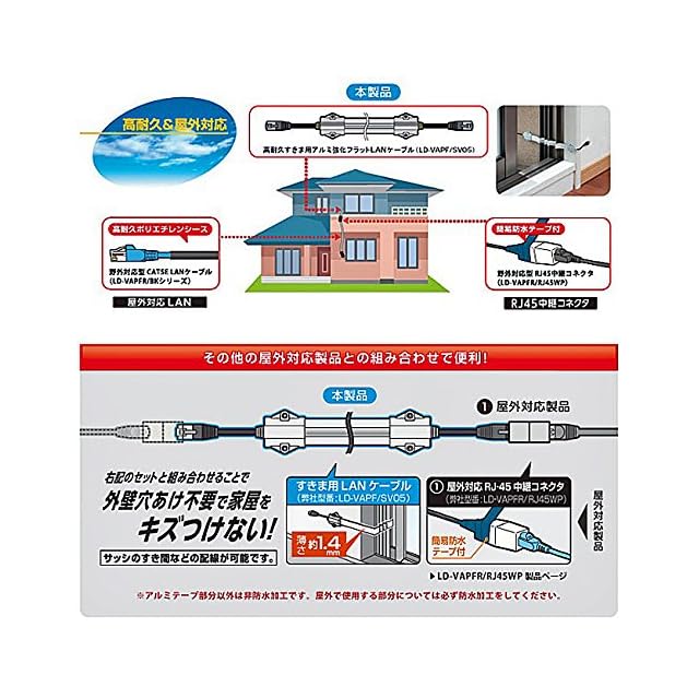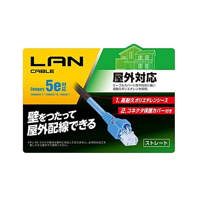 屋外で使用可能なカテゴリー5E対応のスタンダードLANケーブルです。