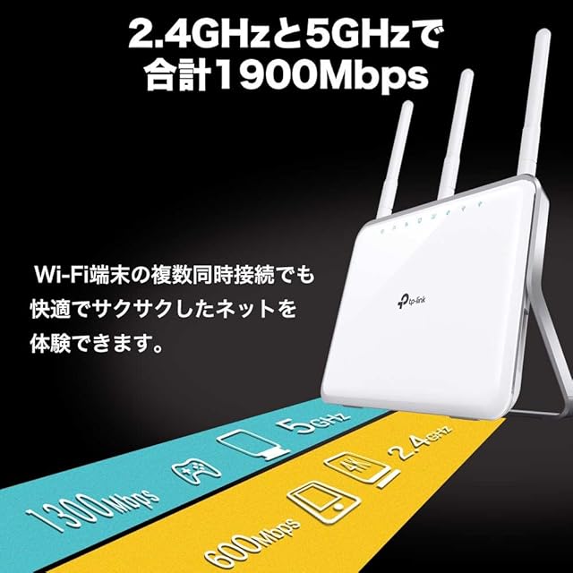 商品名:TP-Link WIFI 無線LAN ルーター 11ac/n/a/b/g 1300Mbps+600Mbps デュアルバンド ギガビット 3年 Archer C9