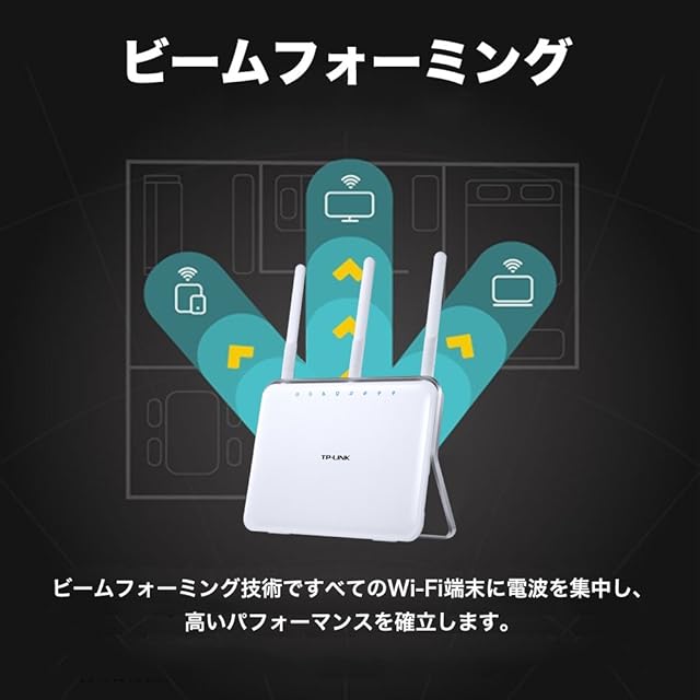 [特徴] ビームフォーミング機能でWi-Fiのまとを絞る。1300Mbps + 600Mbpsの高性能無線LANルーター。