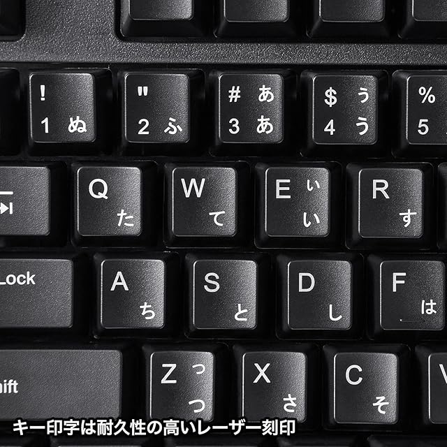 余分なキーを省いた標準的なJIS日本語配列に準拠したキーボードです。