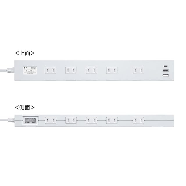 商品名:サンワサプライ 雷タップ 10個口+USB-A+Type-C(PD20W)ホワイト・2m TAP-SP2110NUC-2W