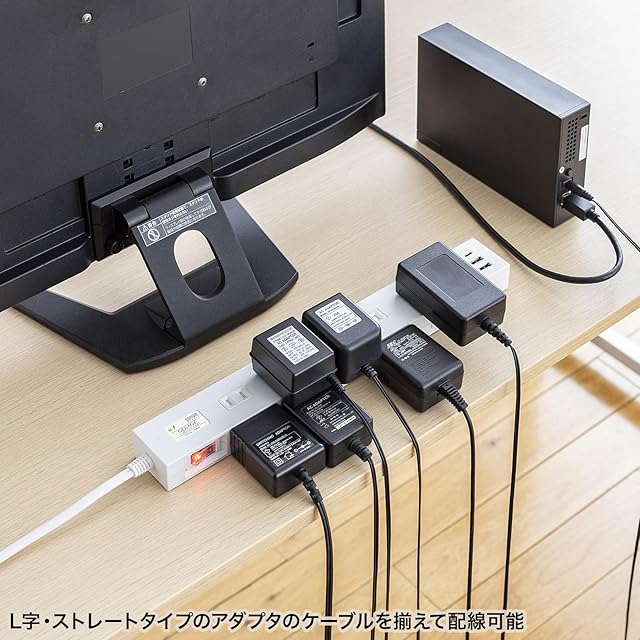 小型ACアダプタが差し込める(差込口ピッチ45mm)10個口電源タップ。iPadなどのタブレットの充電器接続に便利です。