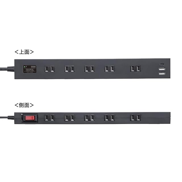 商品名:サンワサプライ 雷タップ 10個口+USB-A+Type-C(PD20W)ブラック・2m TAP-SP2110NUC-2BK