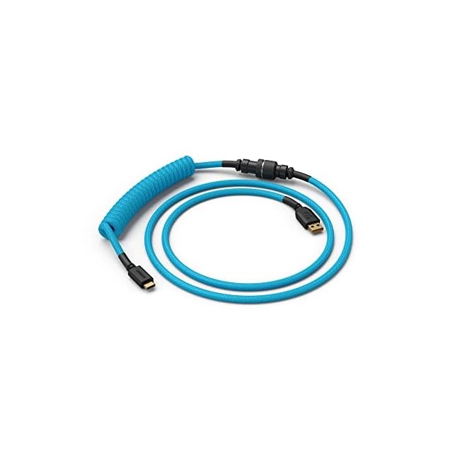 Glorious グロリアス コイルケーブル キーボード 水色 USB Type-C Type-A 取り外し可能な5ピンアビエーター付き ゲーミングキーボード用 コイル型ケーブル coiled cable for gaming keyboard