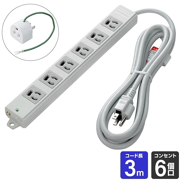 商品名:エルパ (ELPA) 事務所向けタップ 事務 延長コード オフィス 6個口 3m マグネット 抜け止め アース対応 OAT-JP63H