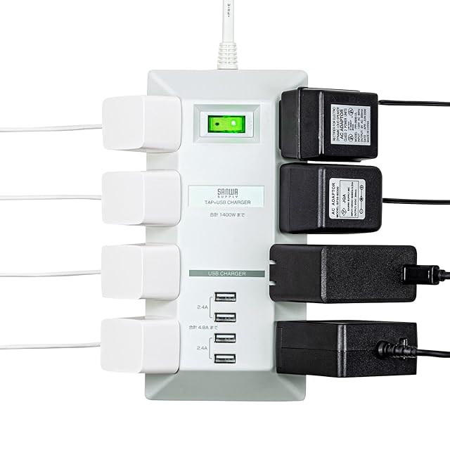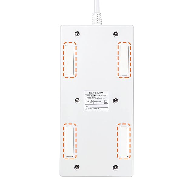商品名:サンワサプライ USB充電ポート付きタップ 平型 ホワイト TAP-B109U-3WN