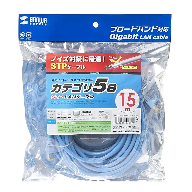 商品名:サンワサプライ STPエンハンスドカテゴリ5ケーブル 15m ライトブルー KB-STP-15LBN